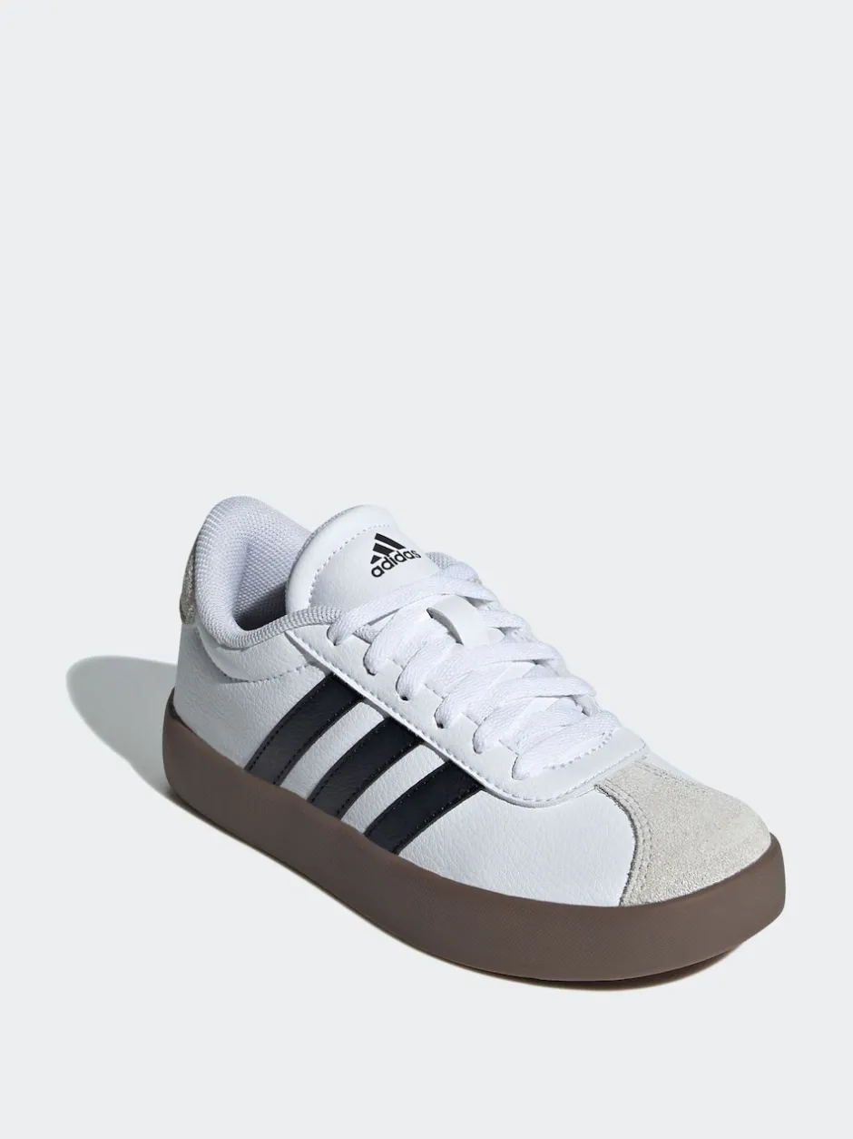 adidas Blanc/Noir – Vl Cour 3.0 Baskets enfant en daim à lacets Hot