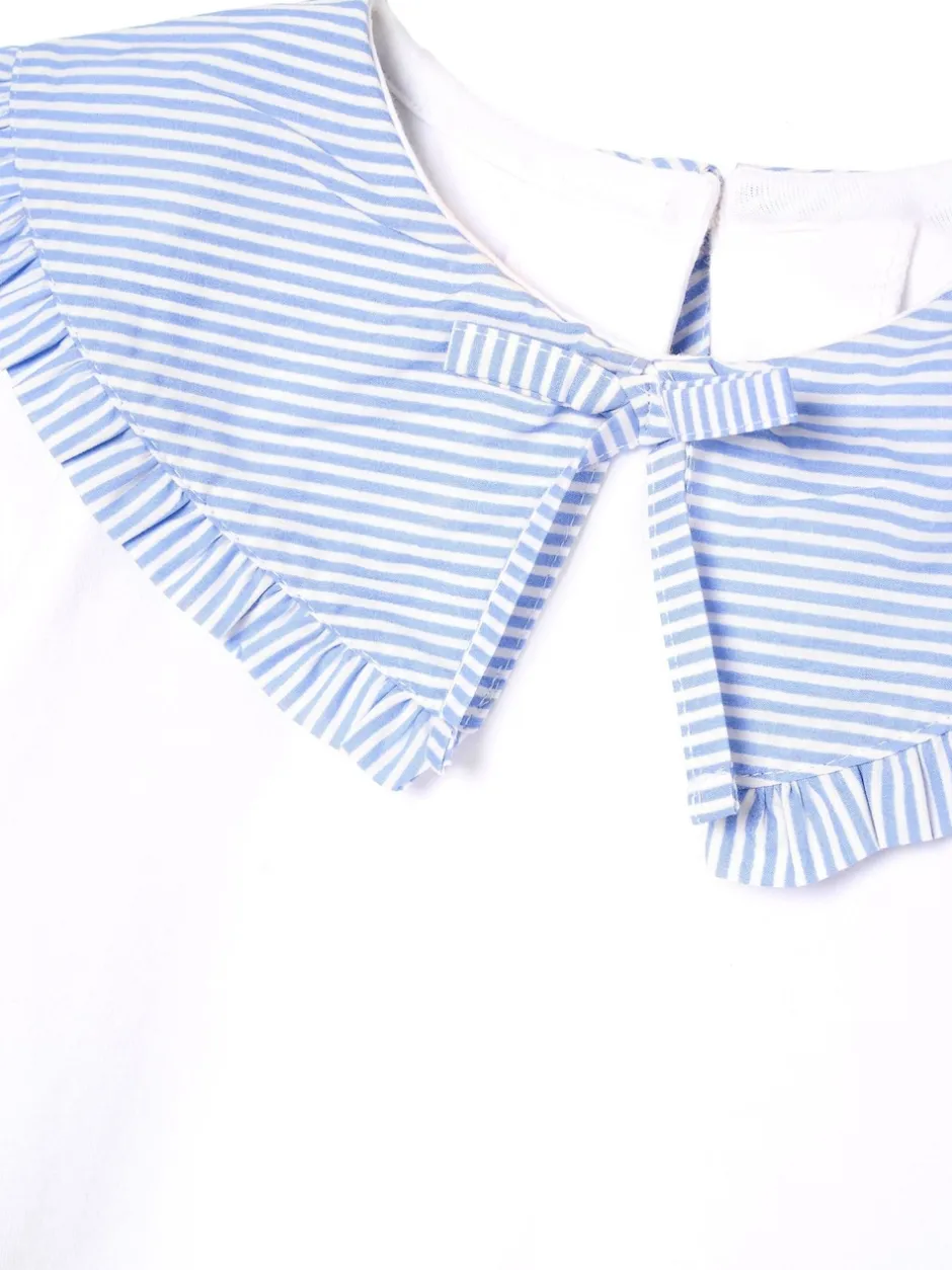 Lavable en machine. Principal 95% coton, 5% élasthanne. Collier 100% coton.