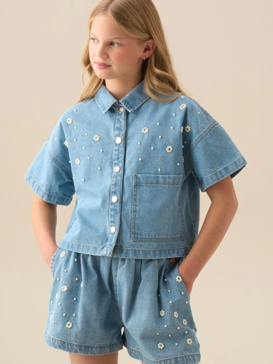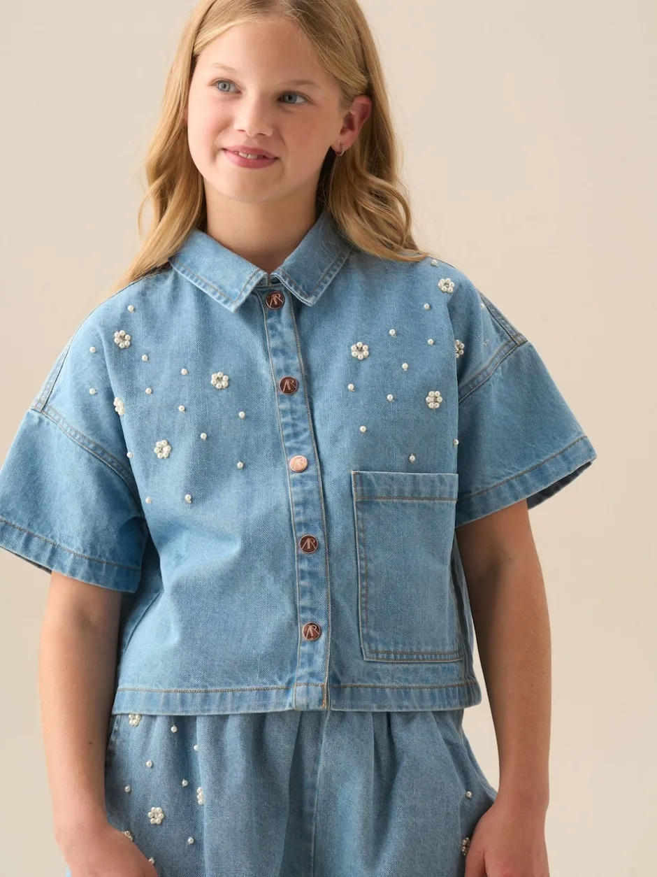 Angel & Rocket Chemise Zeta carrée en denim avec ornements New