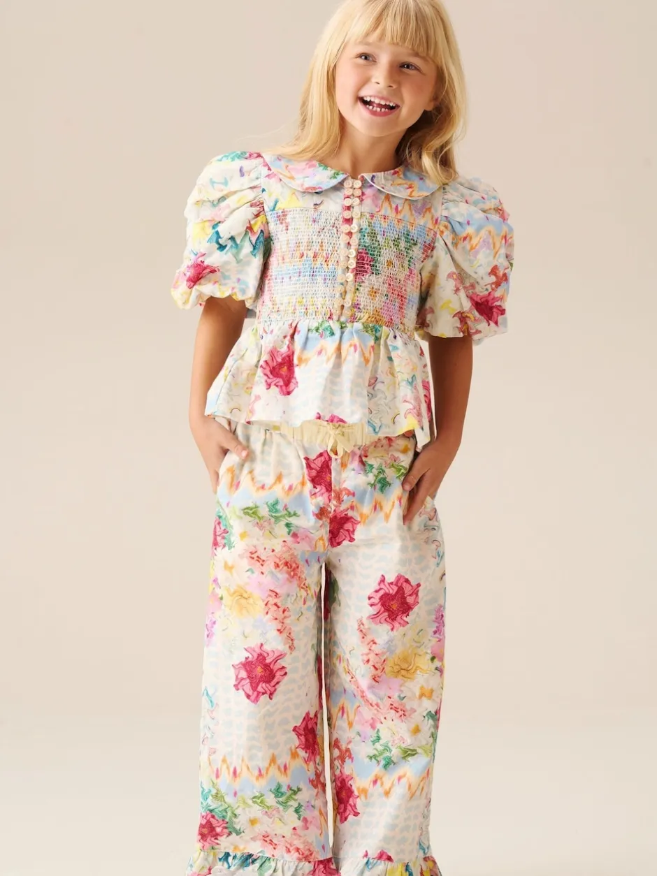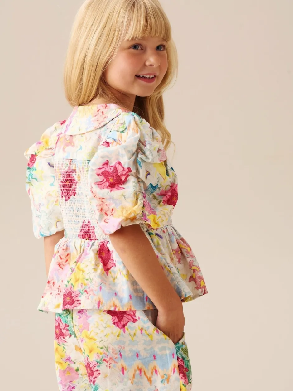 Angel & Rocket Chemisier froncé Orla multicolore à col Claudine Discount