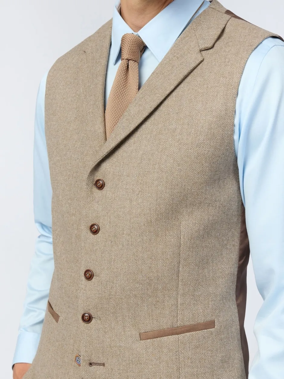 Antique Rogue Gilet Camel en tweed à chevrons Discount
