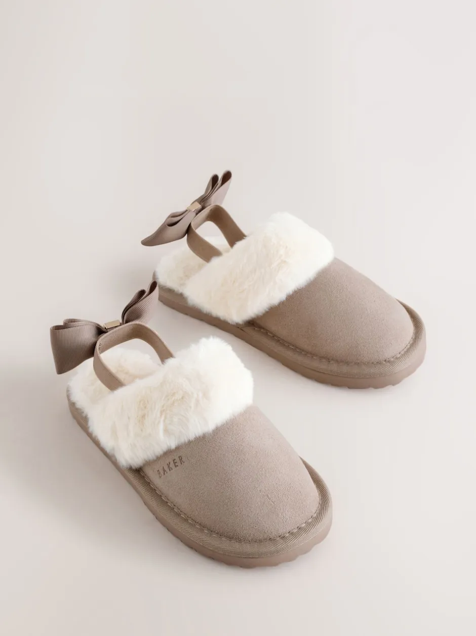 Baker by Ted Baker neutre – Chaussons mules fille en daim en fausse fourrure avec nœud New
