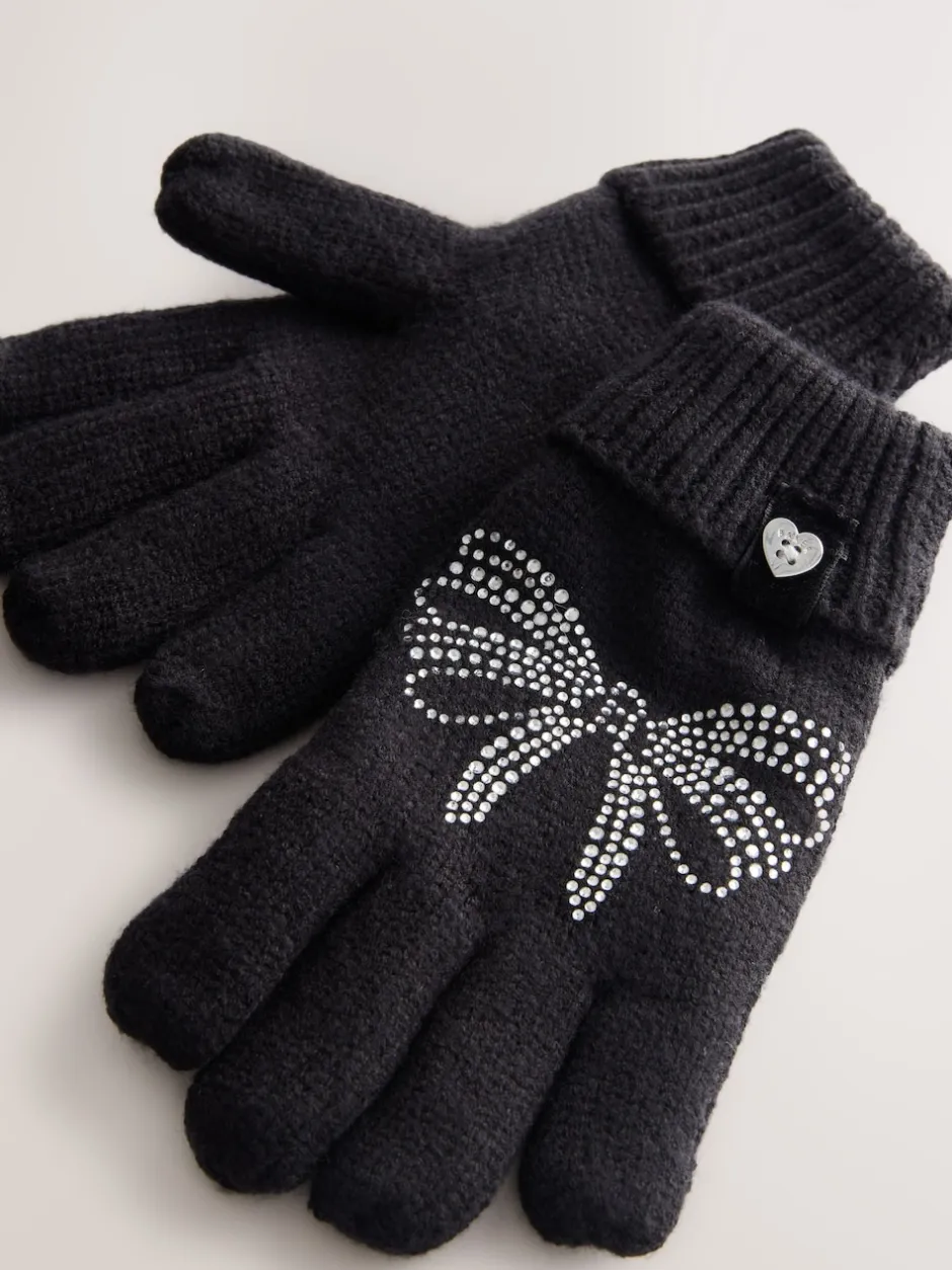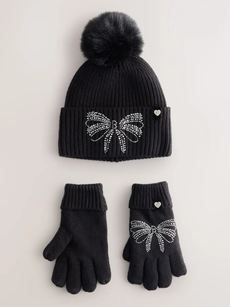 Baker by Ted Baker Noir – Ensemble bonnet et gants pour filles en maille à nœud et diamants Outlet