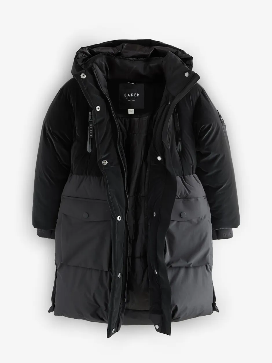 Baker by Ted Baker Parka longue imperméable à ceinture noire rembourrée Discount