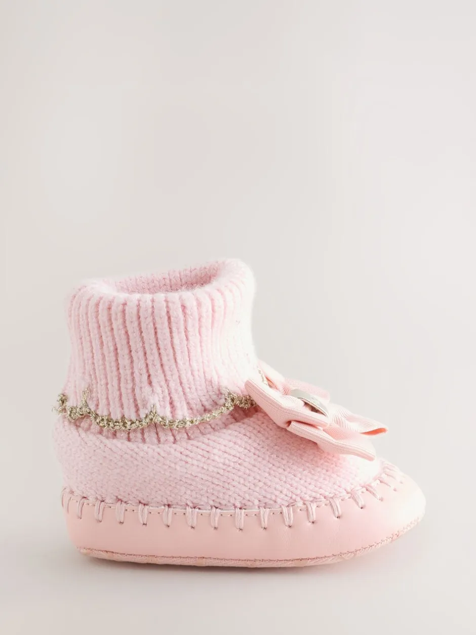 Baker by Ted Baker Rose – Chaussons en maille à bord festonné pour Bébé fille avec nœud Clearance