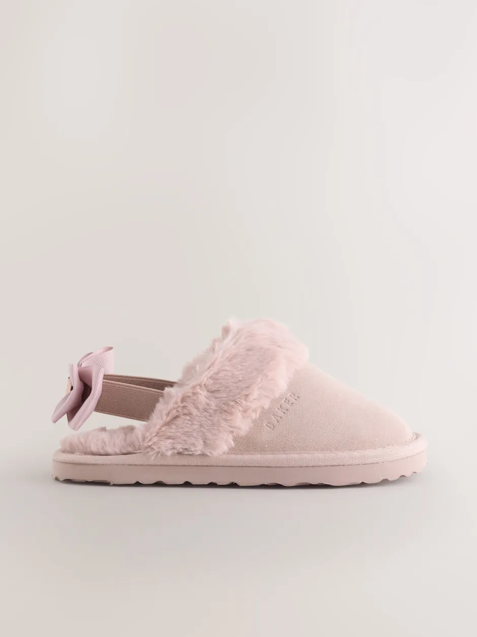 Baker by Ted Baker Rose – Chaussons mules fille en daim en fausse fourrure avec nœud Hot