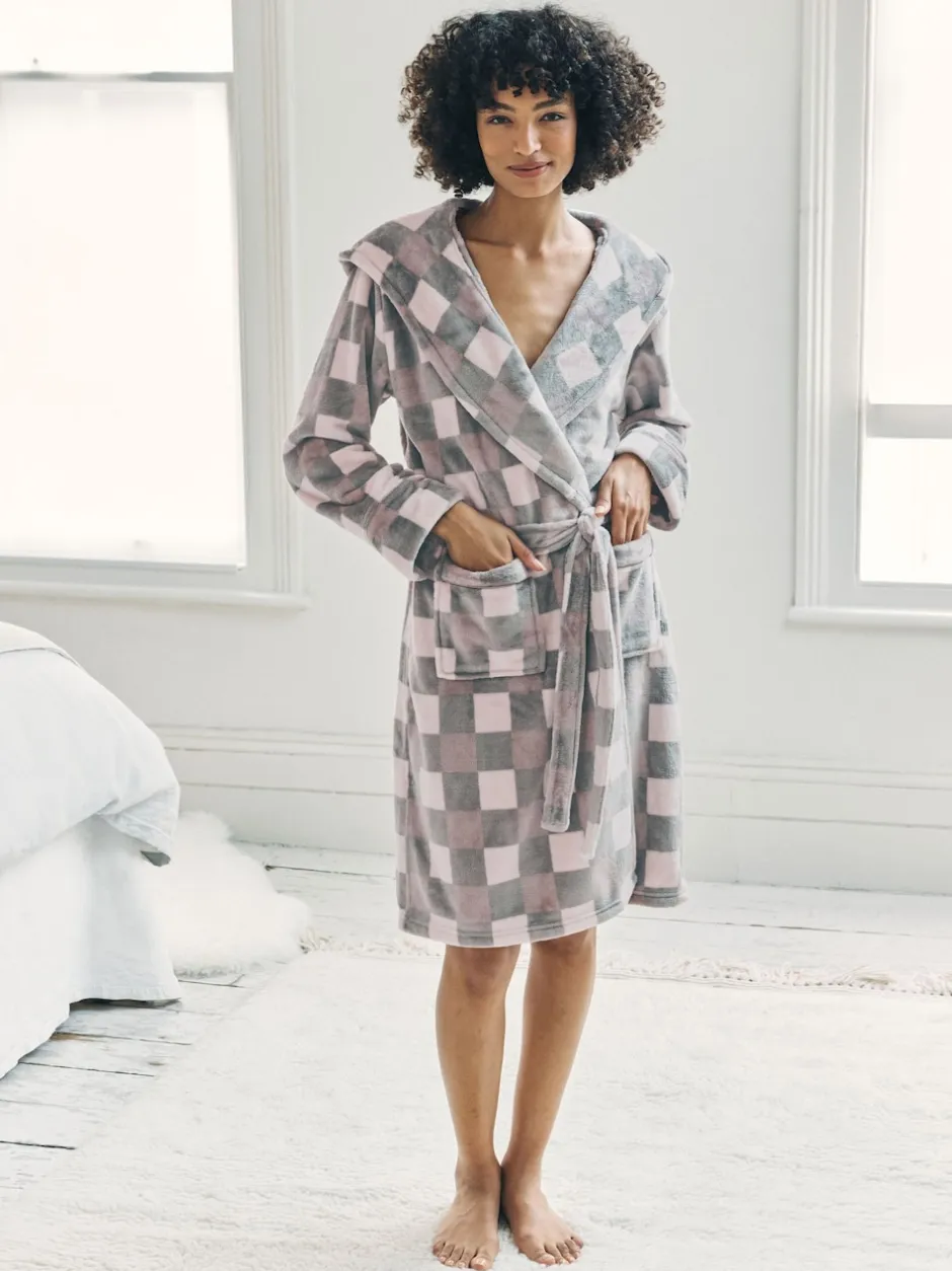 Chelsea Peers Robe de chambre en polaire à carreaux à capuche Sale