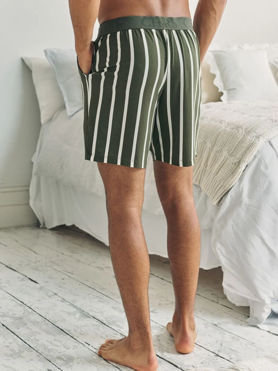 Chelsea Peers Short de pyjama à rayures boutonné – kaki
