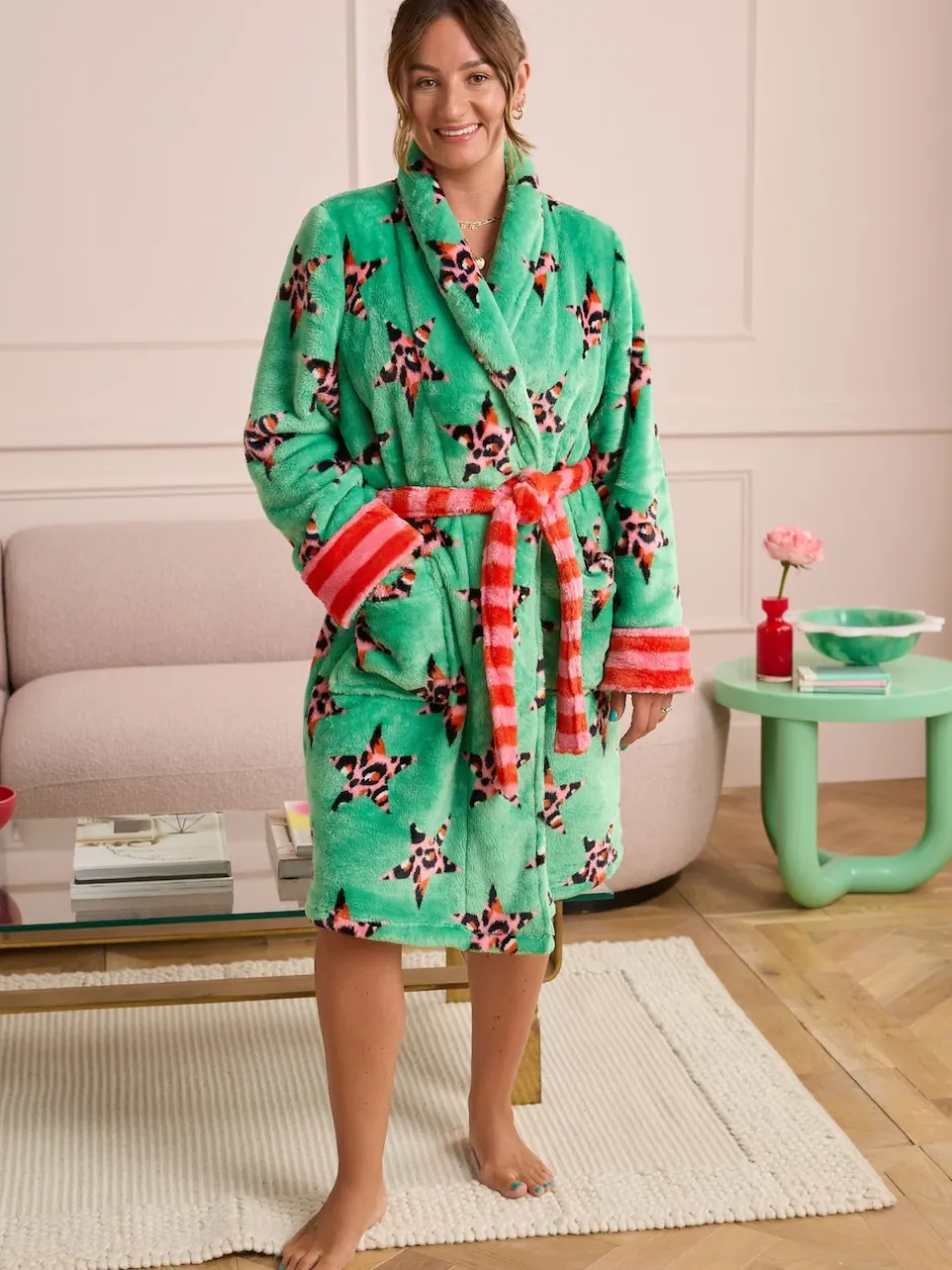 Eleanor Bowmer Léopard vert – Peignoir en polaire imprimé léopard Best