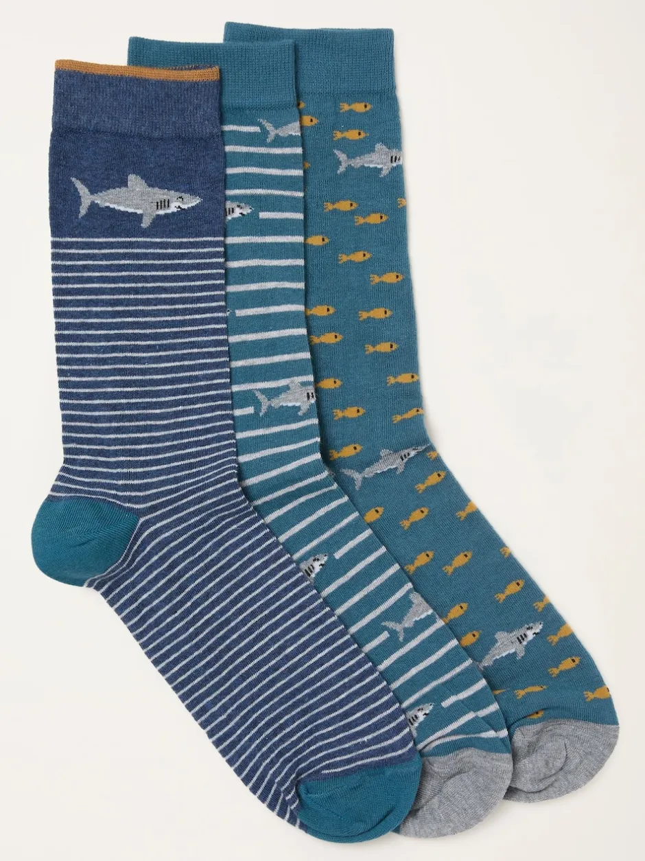 Fat Face FatFace 3 paires de chaussettes requin Hot