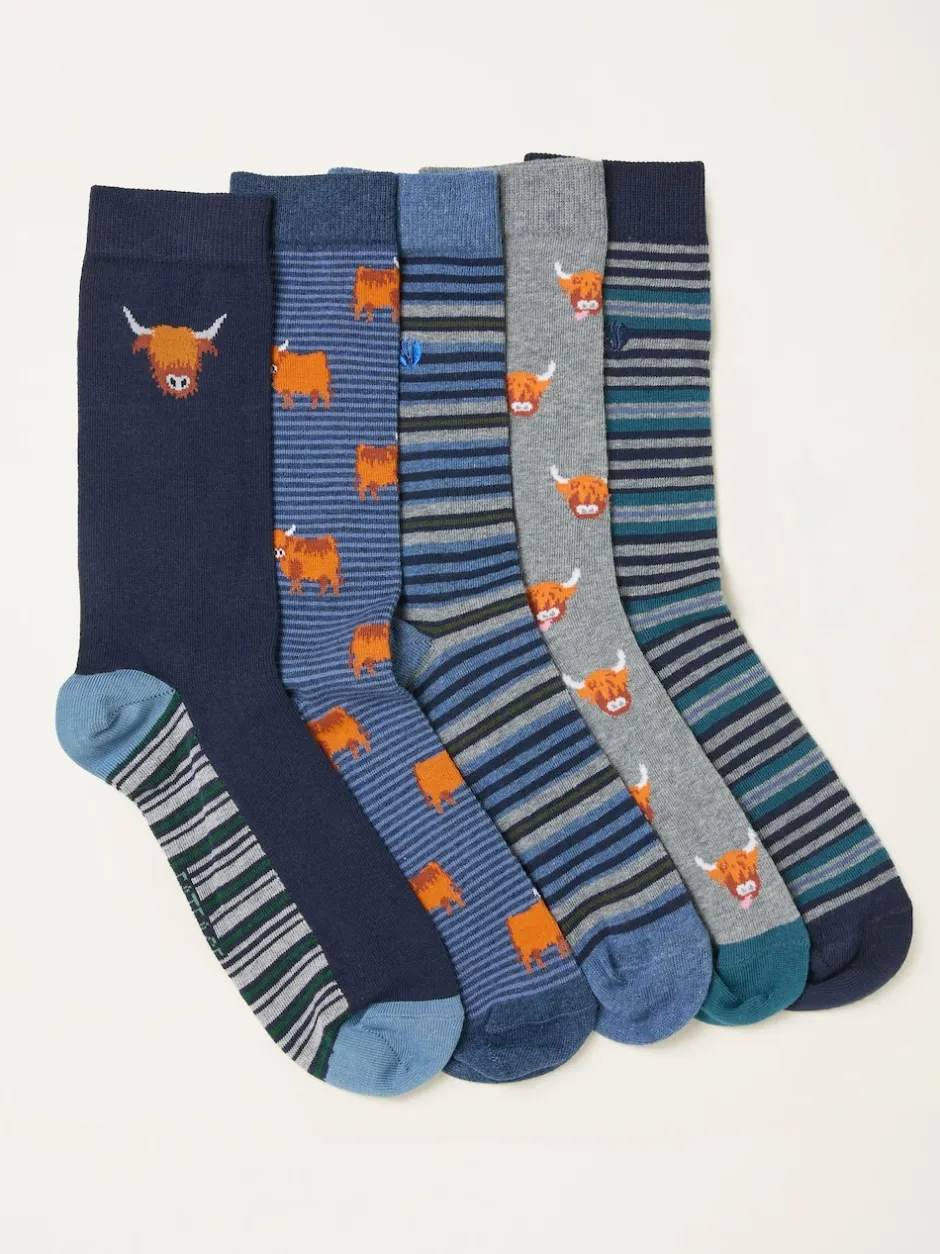 Fat Face FatFace 5 paires de chaussettes à motif vache des Highlands Clearance