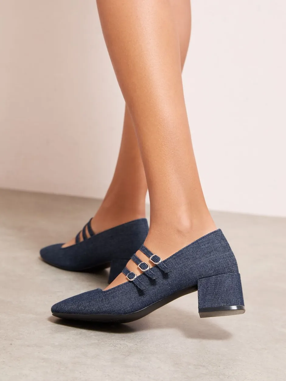 Friends Like These Bleu – Escarpin Smart Mary Jane à talon bloc bas Discount