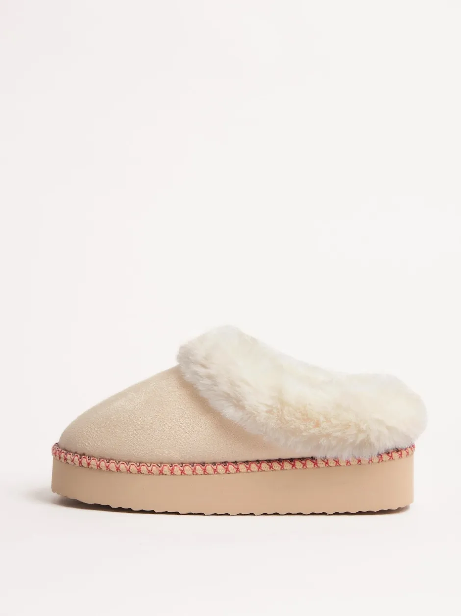 Friends Like These Crème – chaussons mules brodés à poignets en fausse fourrure Sale