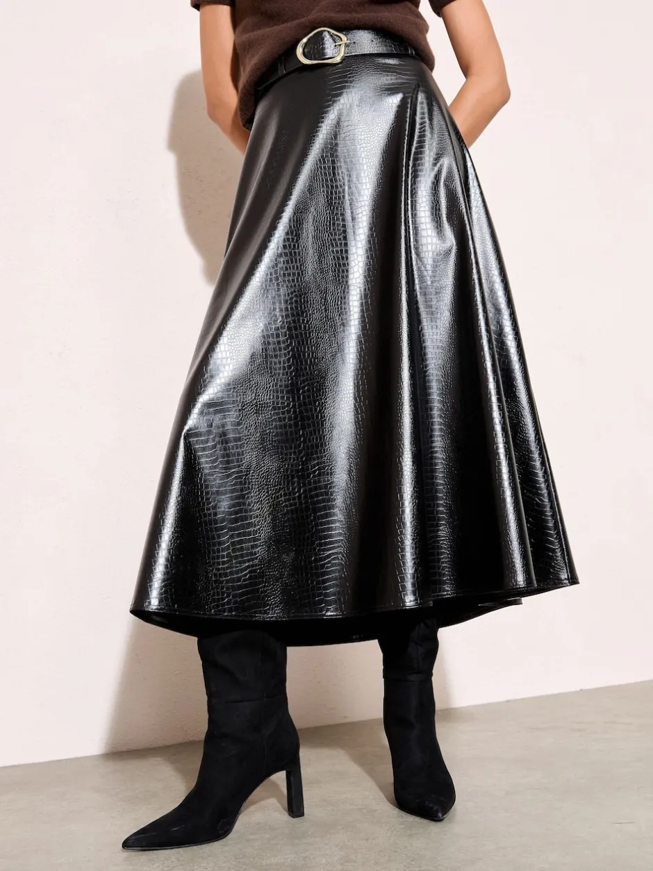 Friends Like These Jupe mi-longue en similicuir à ourlet ceinturé New