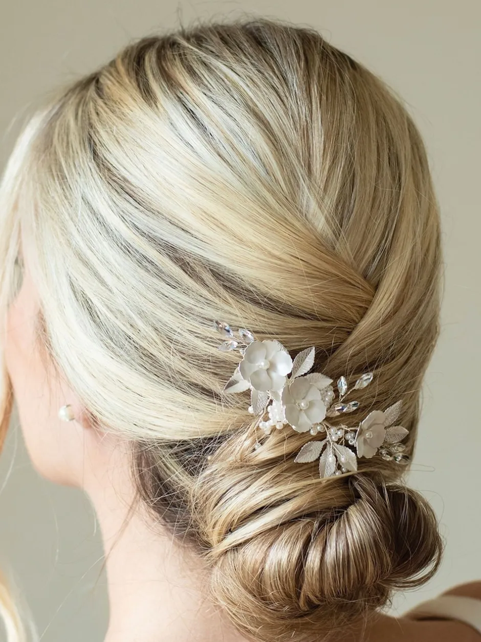 Ivory & Co Argent – Pince à fleurs émaillées et cristaux de gardénia Best