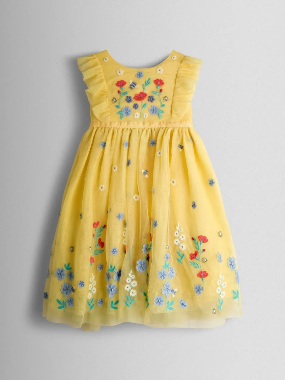 Jojo Maman Bébé Jaune clair – Appliqué Floral Tulle Party Dress New