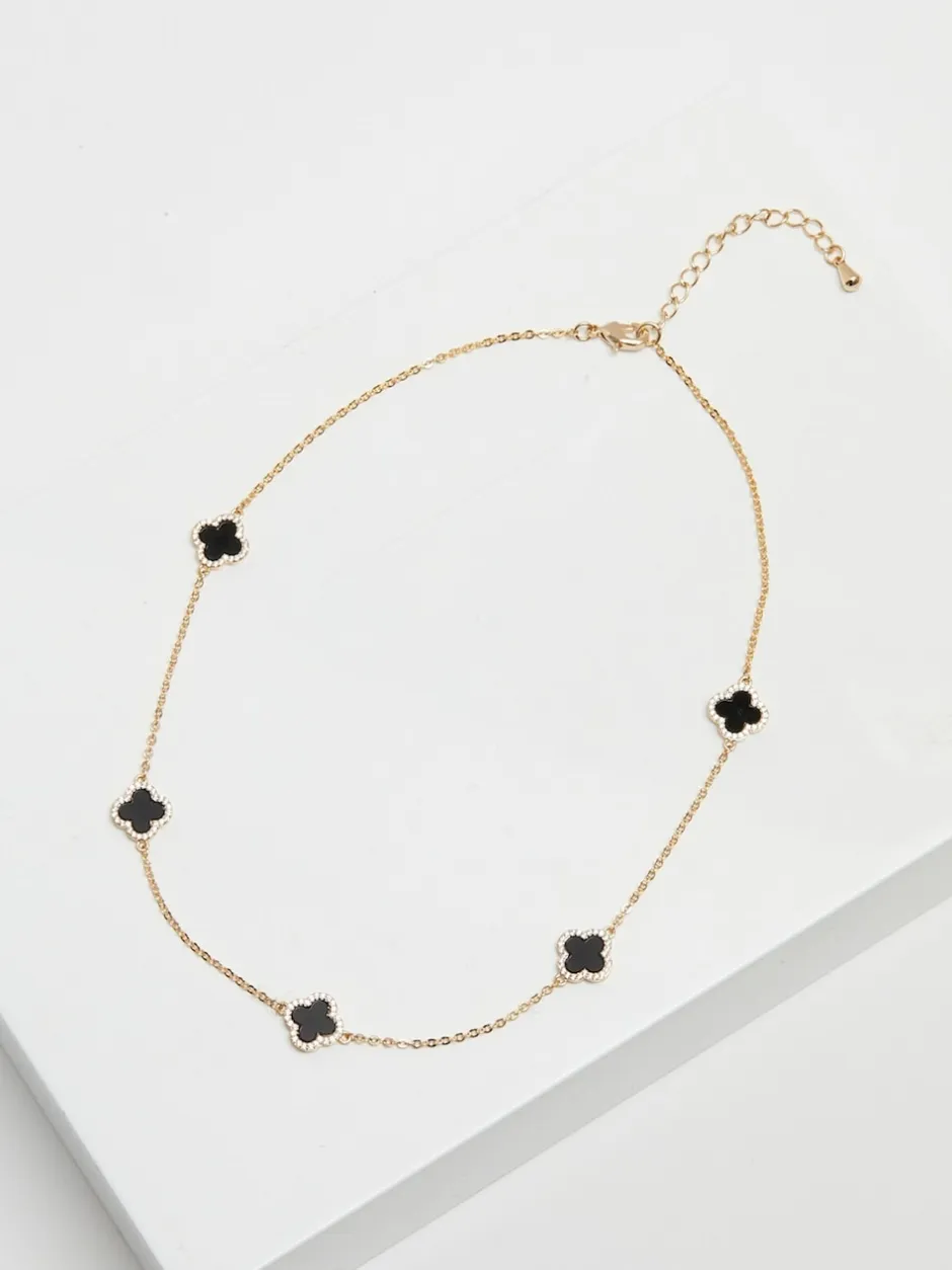 Jon Richard Noir – Plaqué et Jets Collier de trèfles de station Discount