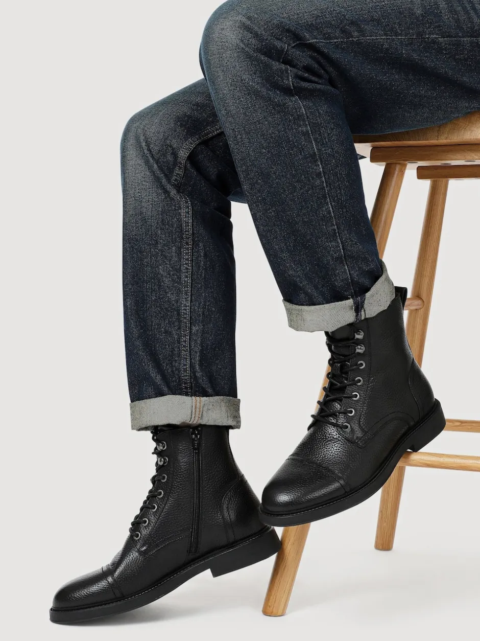 Jones Bootmaker Noir – Davide Bottes militaires Coupe large en cuir