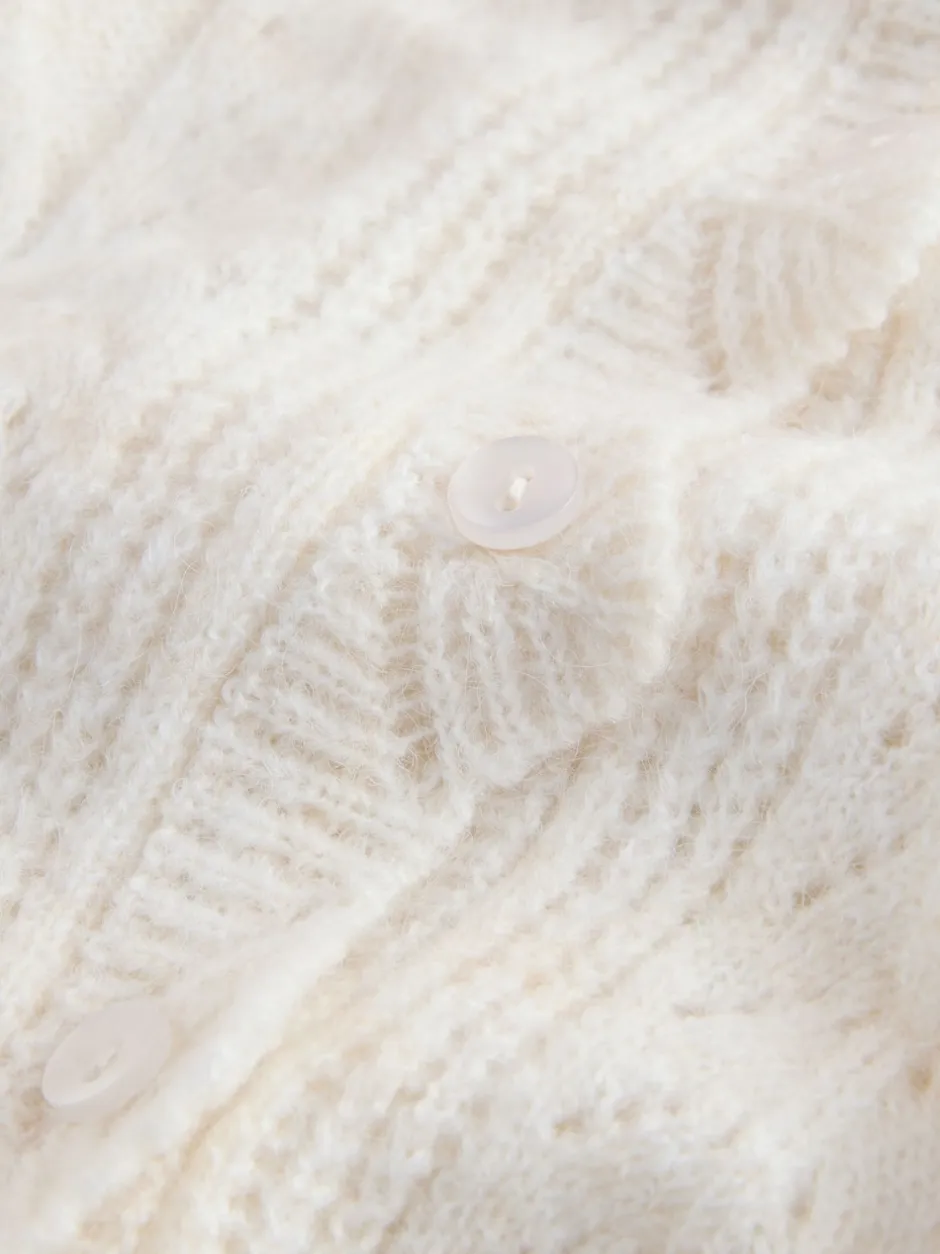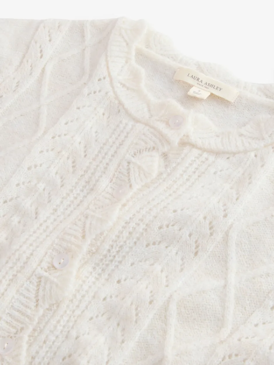 Laura Ashley écru – Cardigan boutonné pointelle et festoncles avec une touche de laine Best
