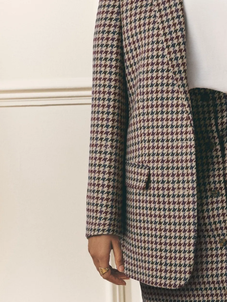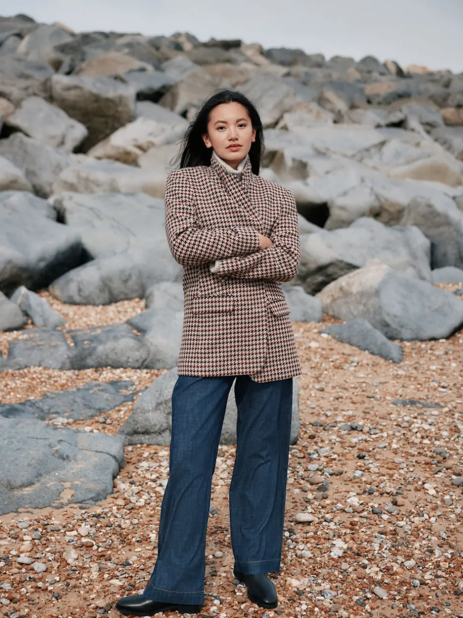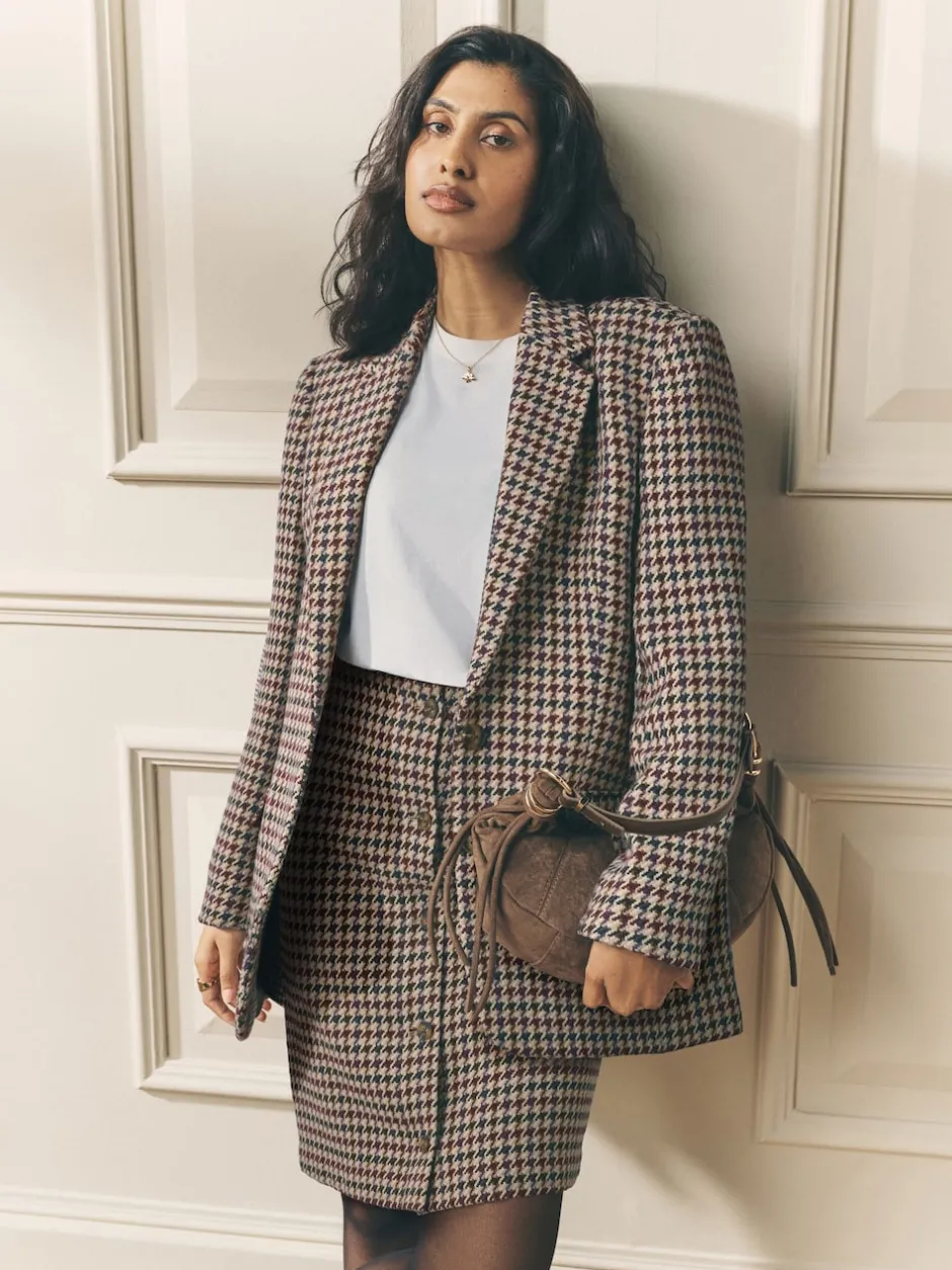Laura Ashley Marron – Blazer Heritage Dogtooth à carreaux en laine New