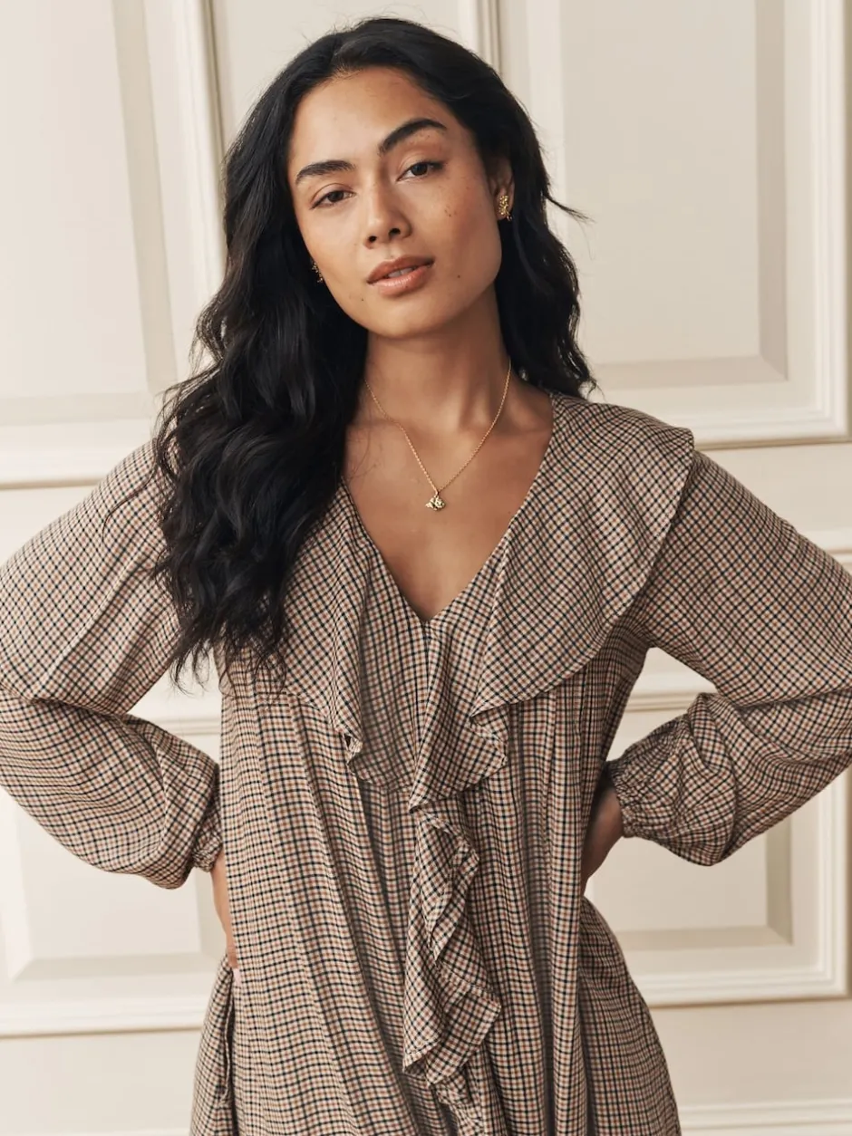 Laura Ashley Robe Court Heritage Carreaux à volants sur le devant Hot