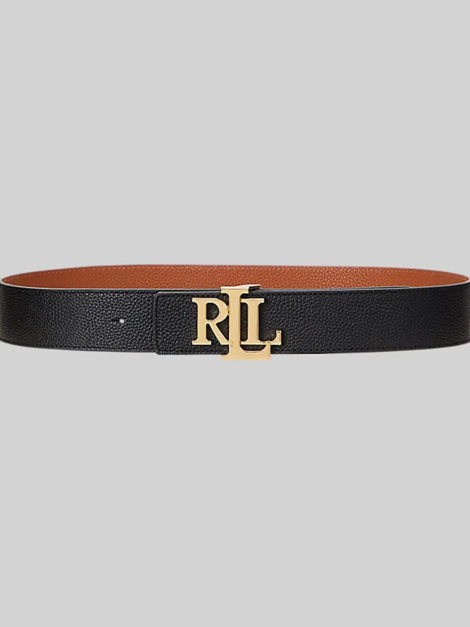 Lauren Ralph Lauren Ceinture réversible en cuir galet à large logo Sale