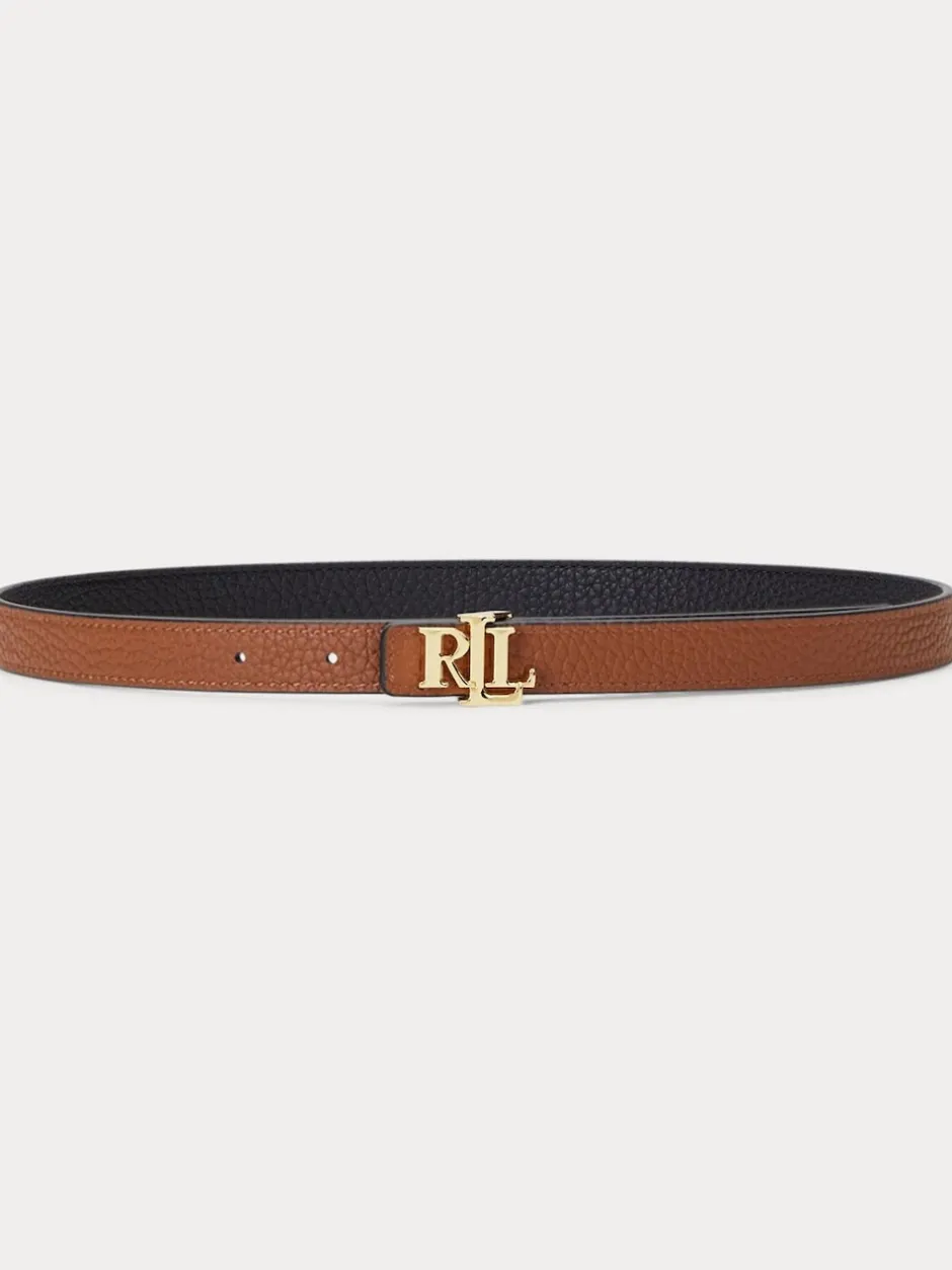 Lauren Ralph Lauren Noir/Lauren Fauve – 1.9cm Ceinture réversible en cuir galet à logo skinny Discount