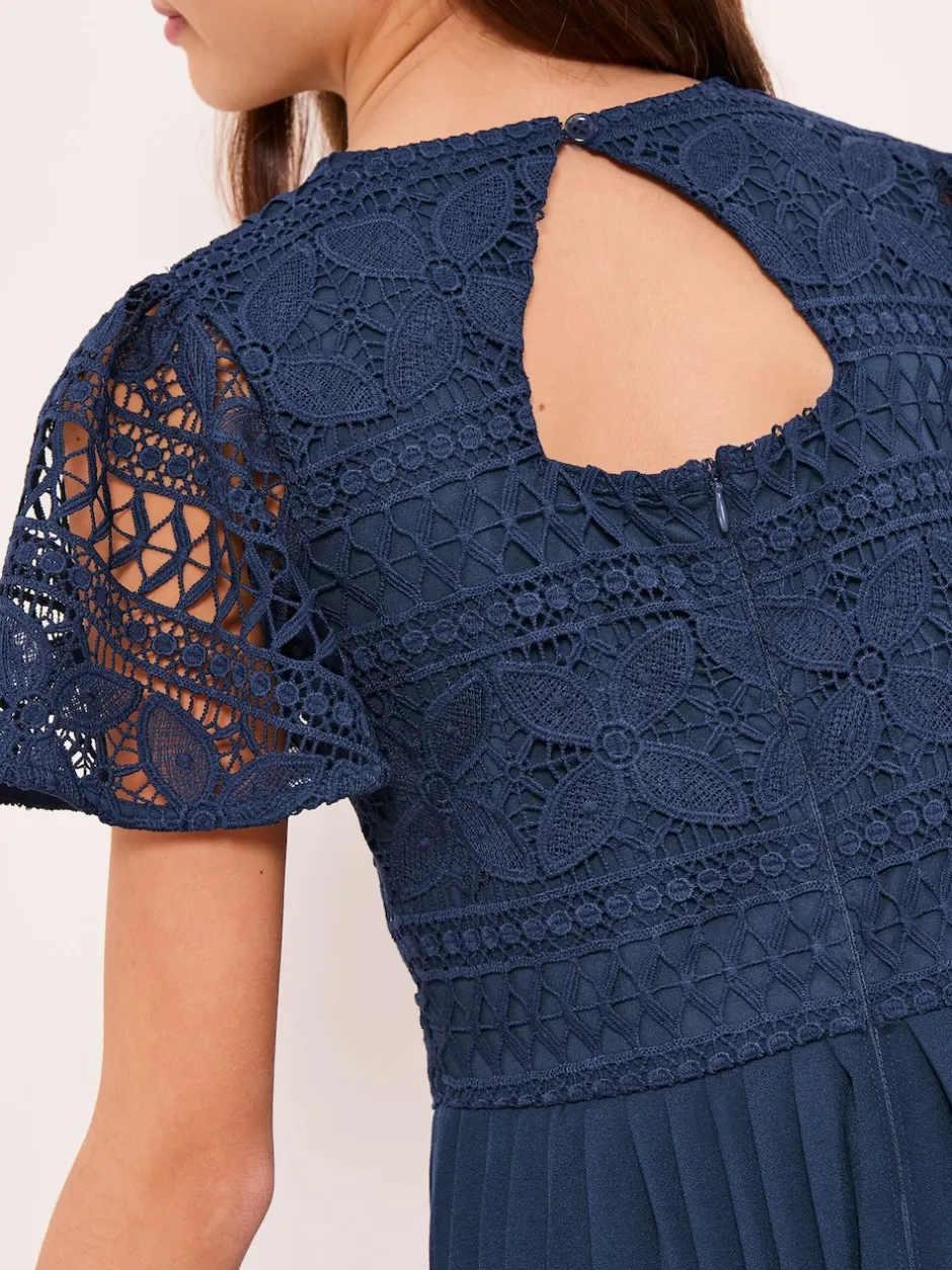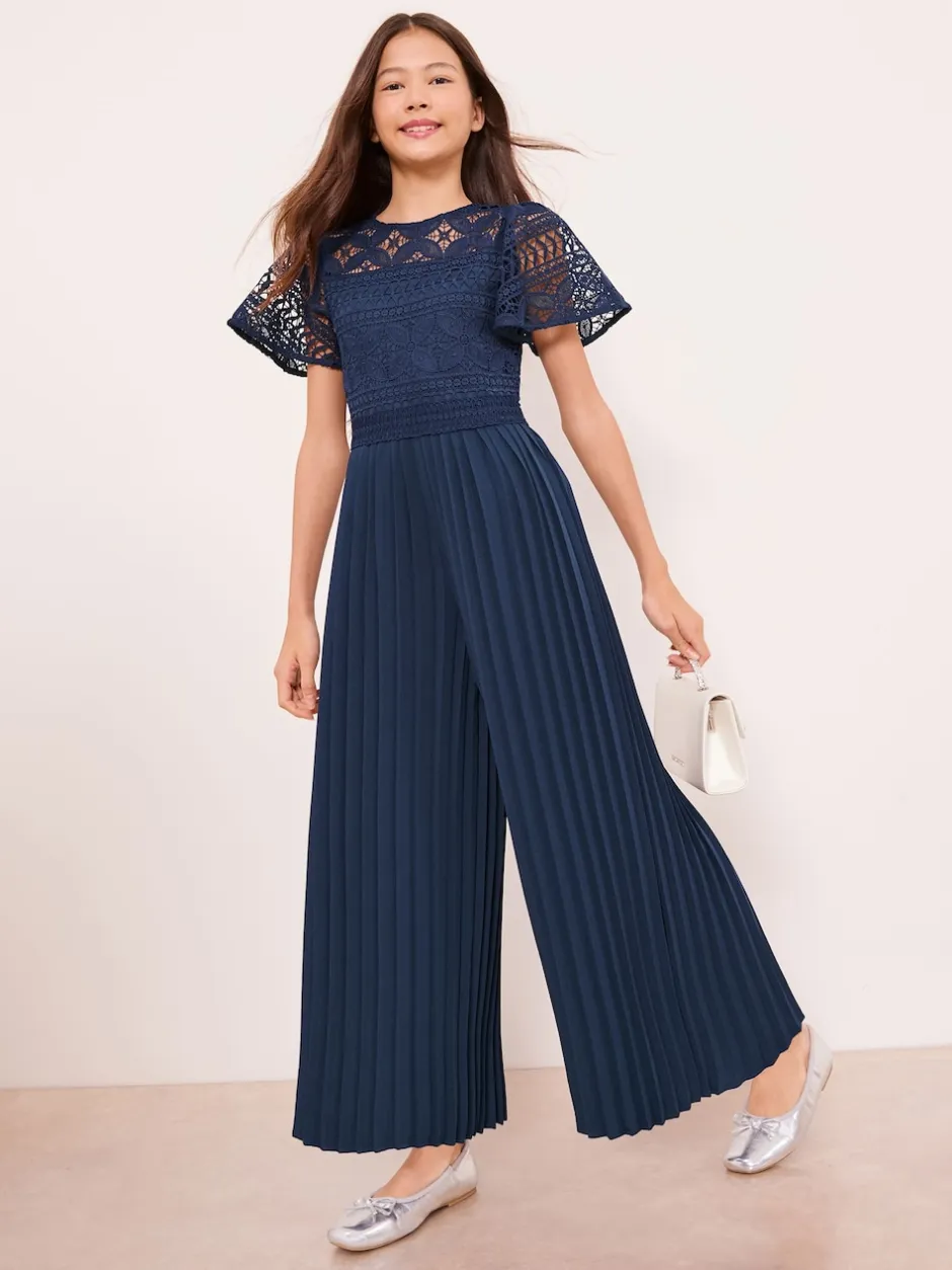 Lipsy Bleu marine – Combinaison d’occasion en dentelle à manches volantes (5-16yrs)