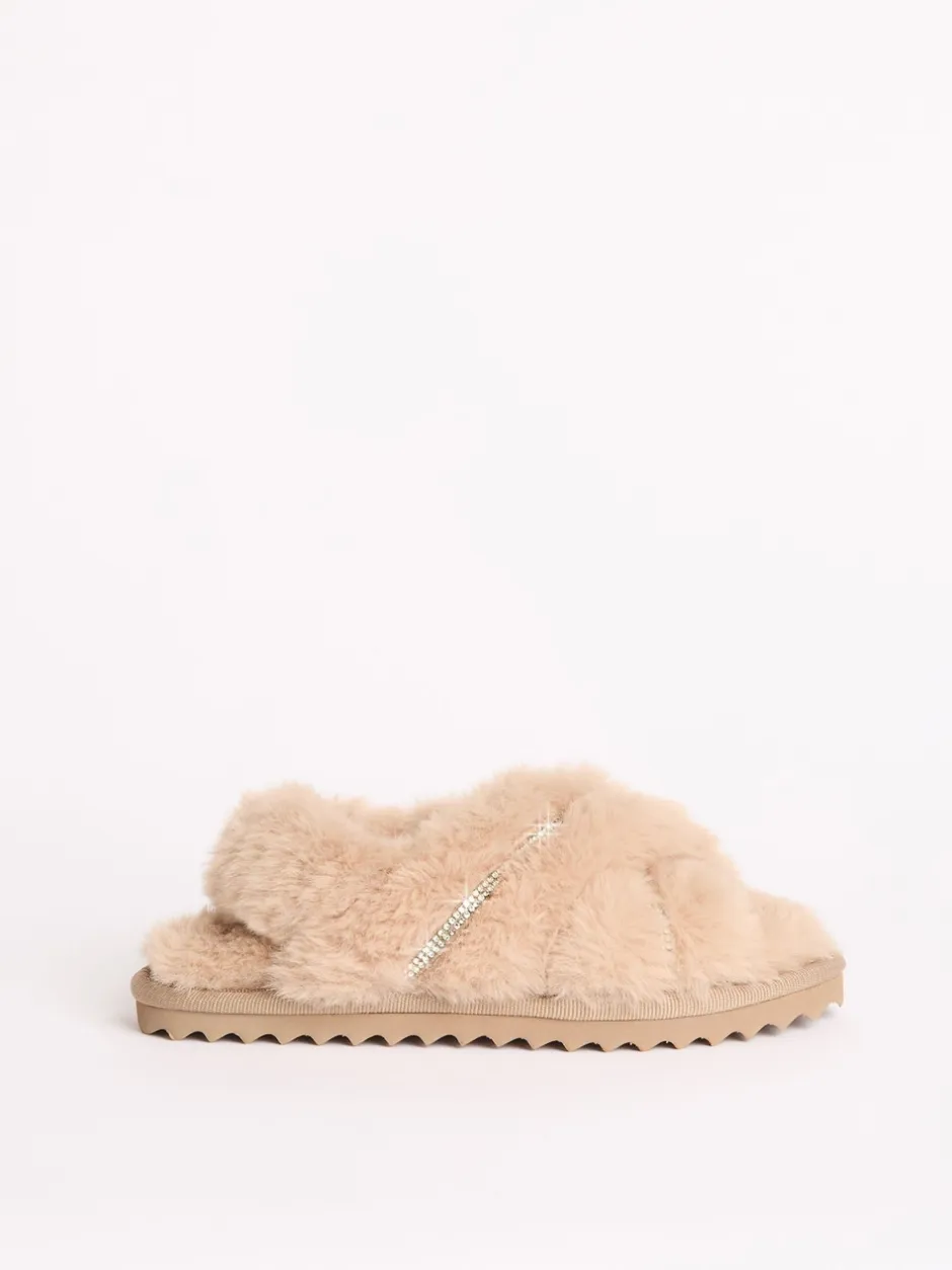 Lipsy chameau – Chaussons à lanières croisées en fausse fourrure Best