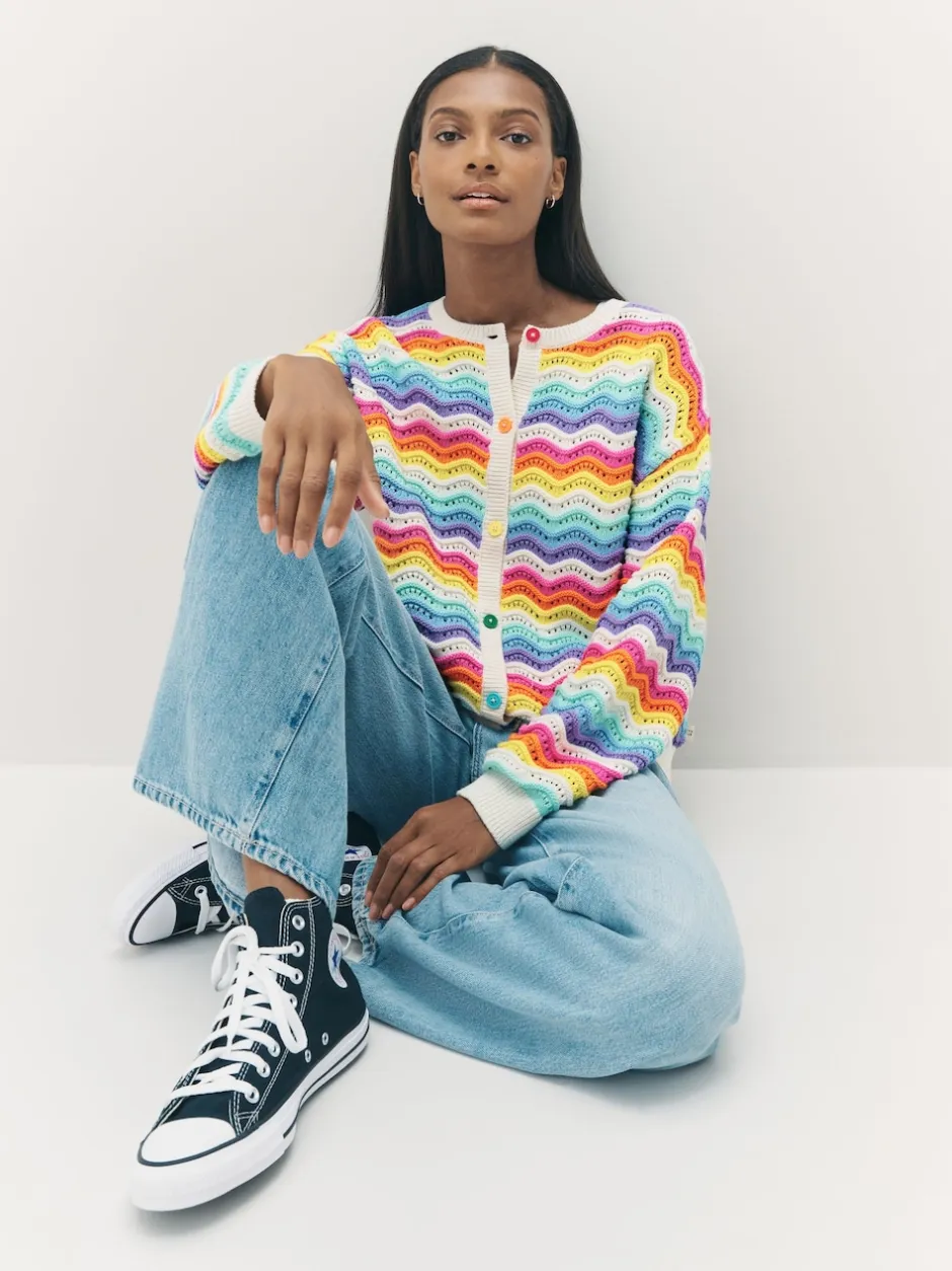 Little Bird by Jools Oliver Cardigan en maille à rayures ondulées pastel Hot