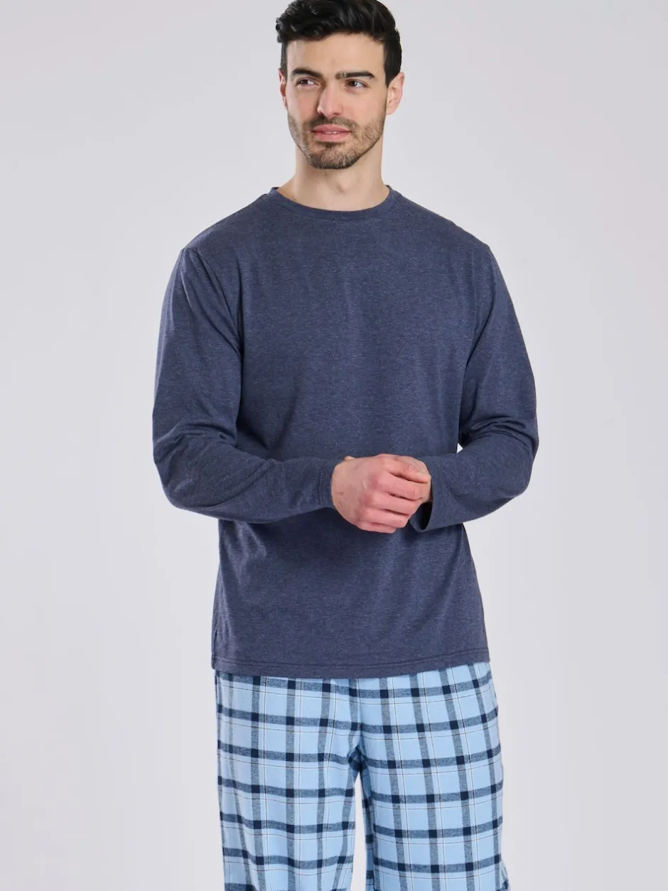 Loungeable Bleu – Ensemble pyjama haut en jersey et pantalon à carreaux brossé Online