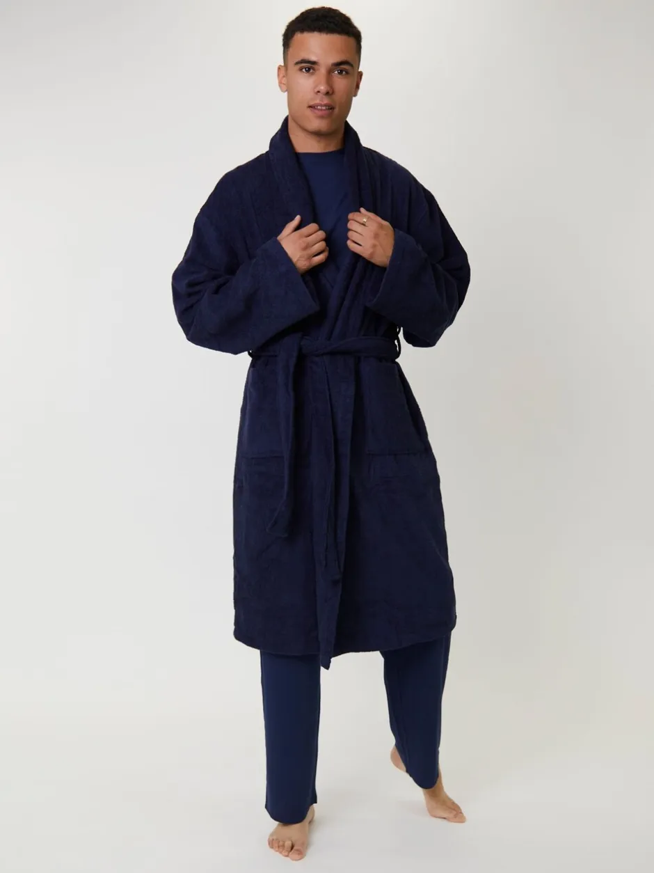 Loungeable Bleu – Peignoir homme classique en éponge Sale