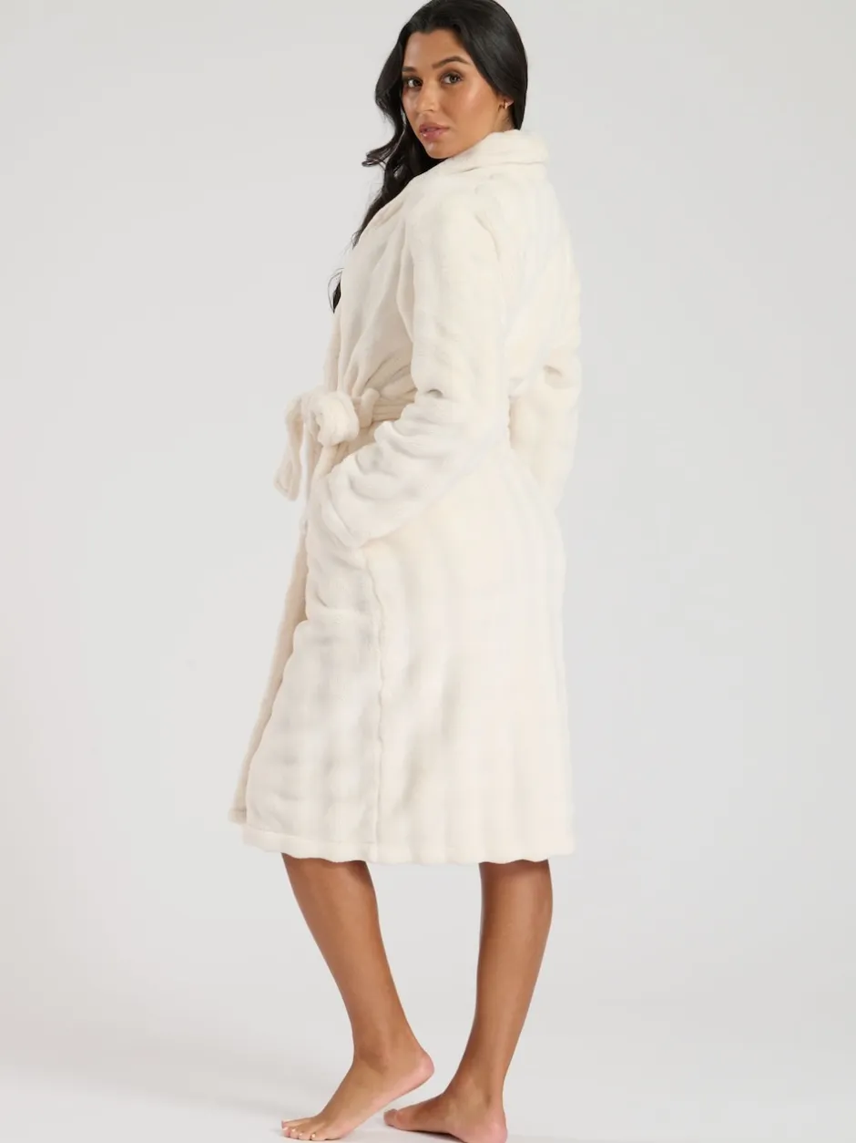 Loungeable Crème – Robe de chambre mi-longue en polaire à col châle Sale
