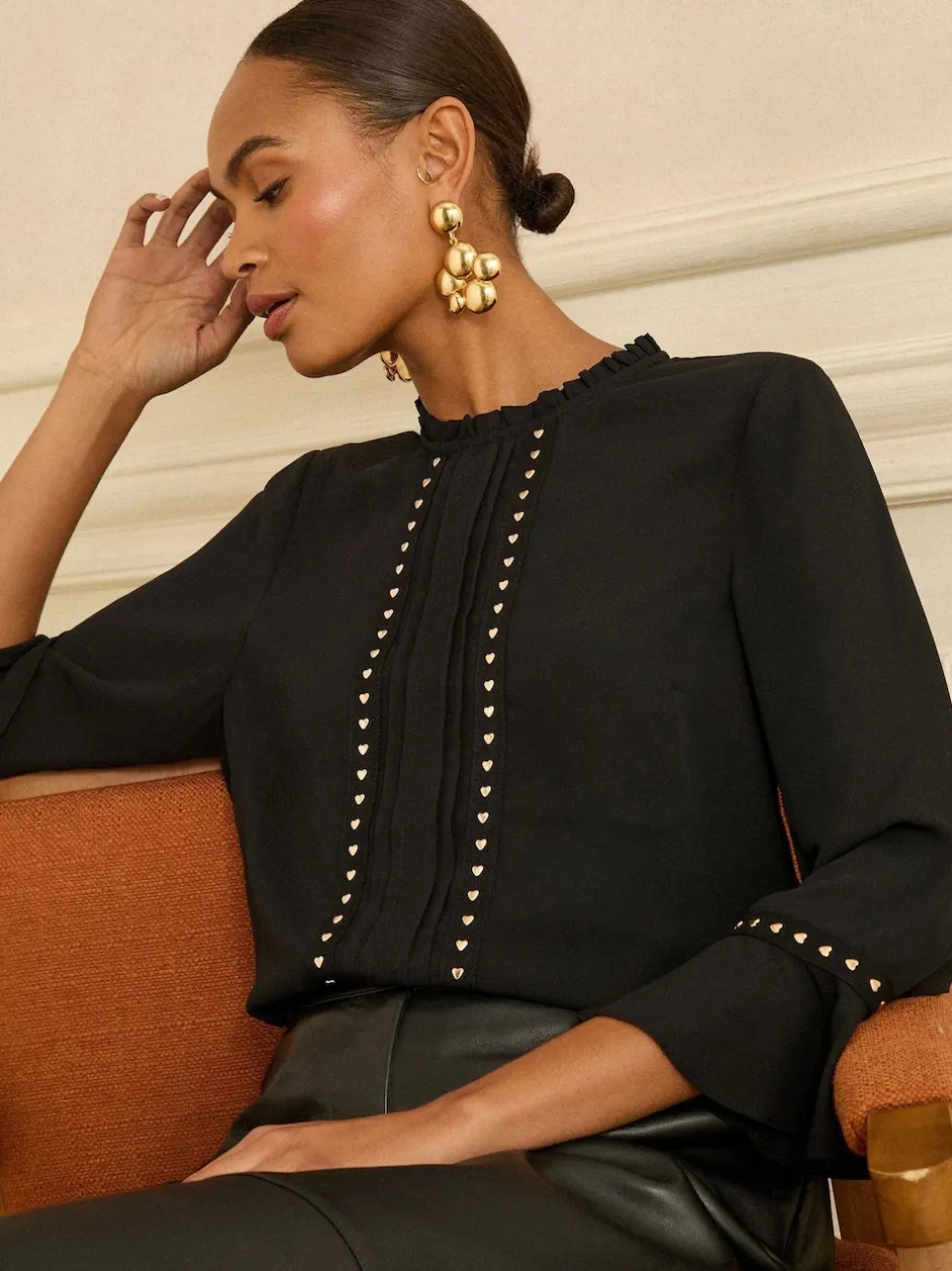 Love & Roses Coeur noir – chemisier à manches flûte avec détail matériel Hot