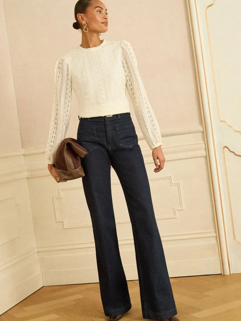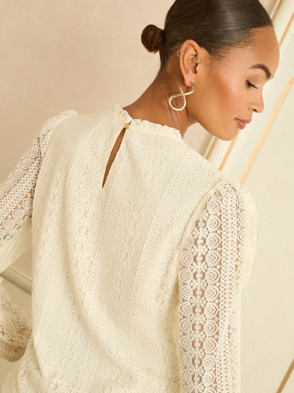 Love & Roses ivoire – Haut en dentelle à manches longues Sale
