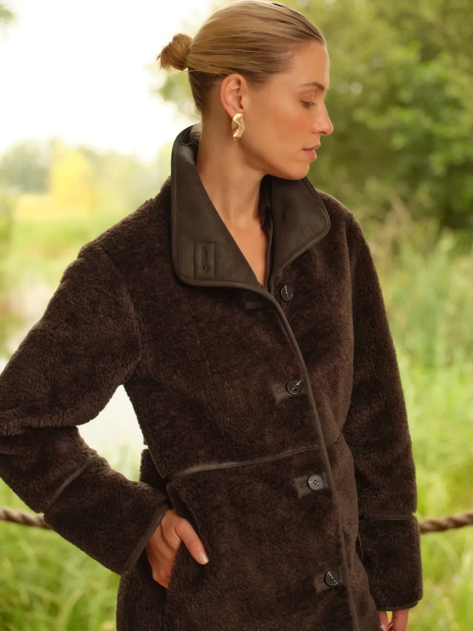 Love & Roses Manteau mi-long en shearling à liserés Online