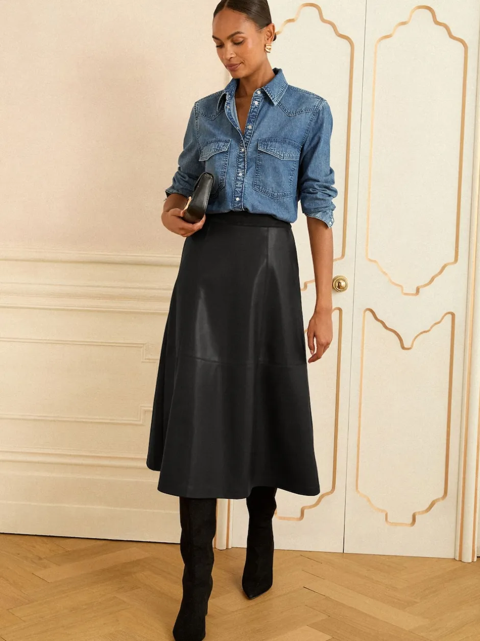 Love & Roses Noir – Jupes mi-long ajustées et flamboyantes en faux cuir Discount