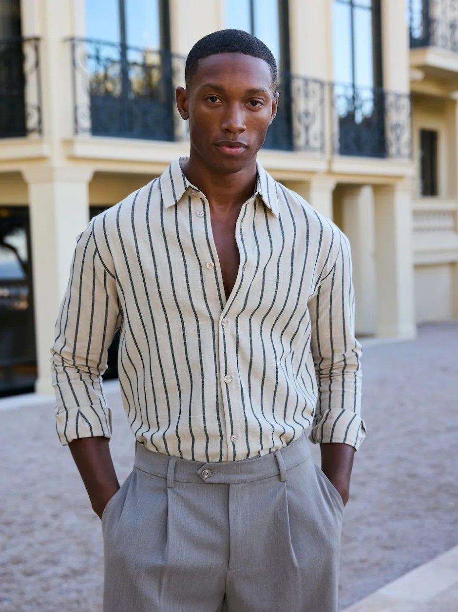 MAUVAIS Hors blanc – Chemise Bocelli à rayure manches longues Clearance