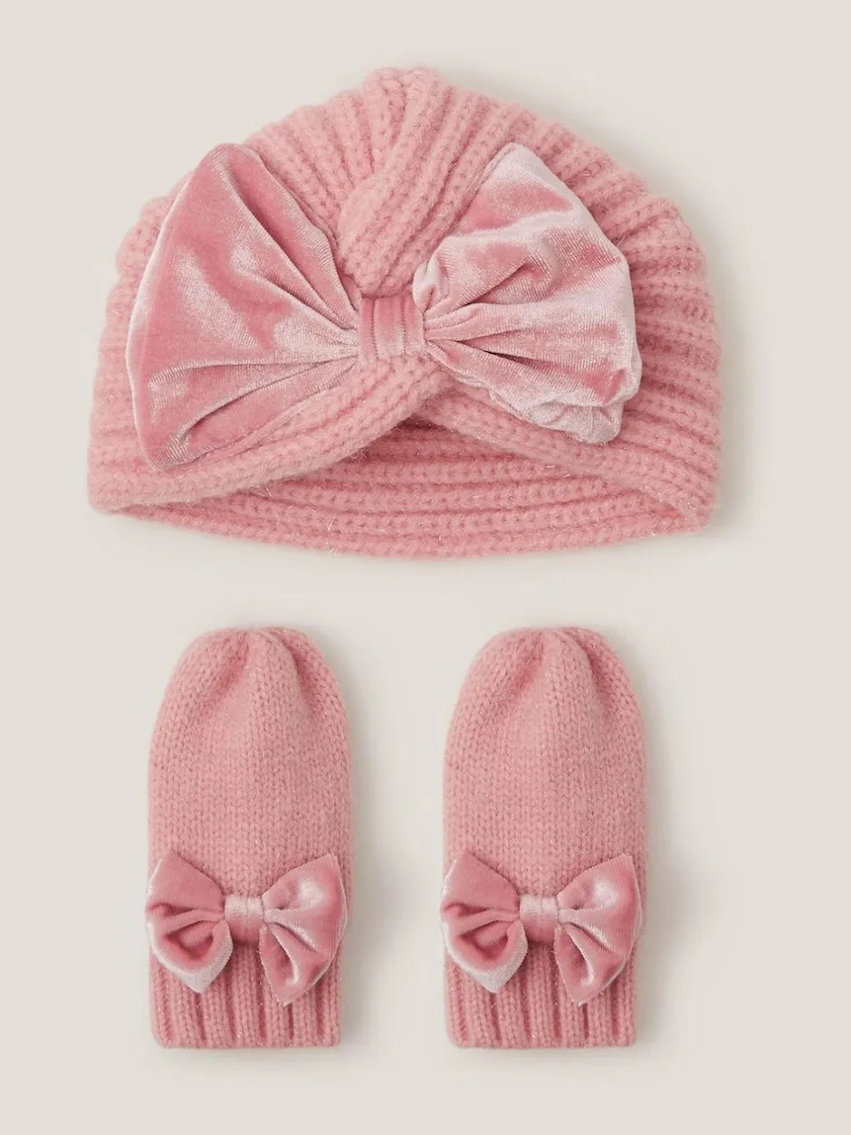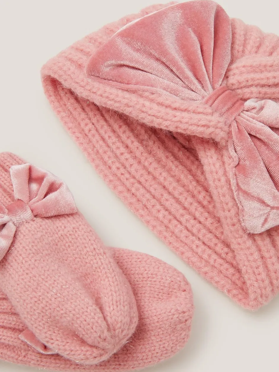 Monsoon Ensemble Bonnet et Mitaines en maille Bébé à nœud Online