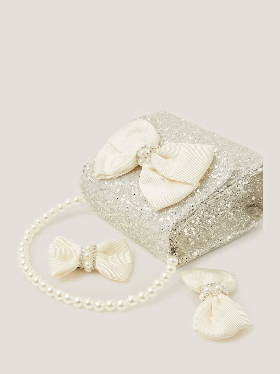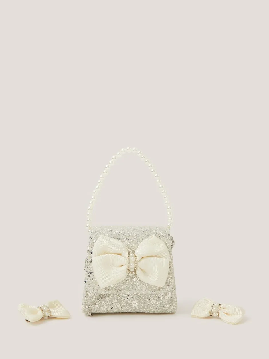 Monsoon Ensemble sac à main et pinces à cheveux avec nœud en perles pailletées Clearance