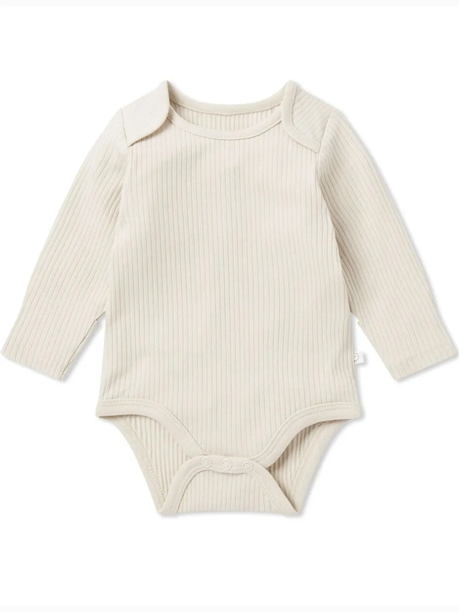 Mori Écru – Body côtelé extensible à manches longues et encolure Outlet
