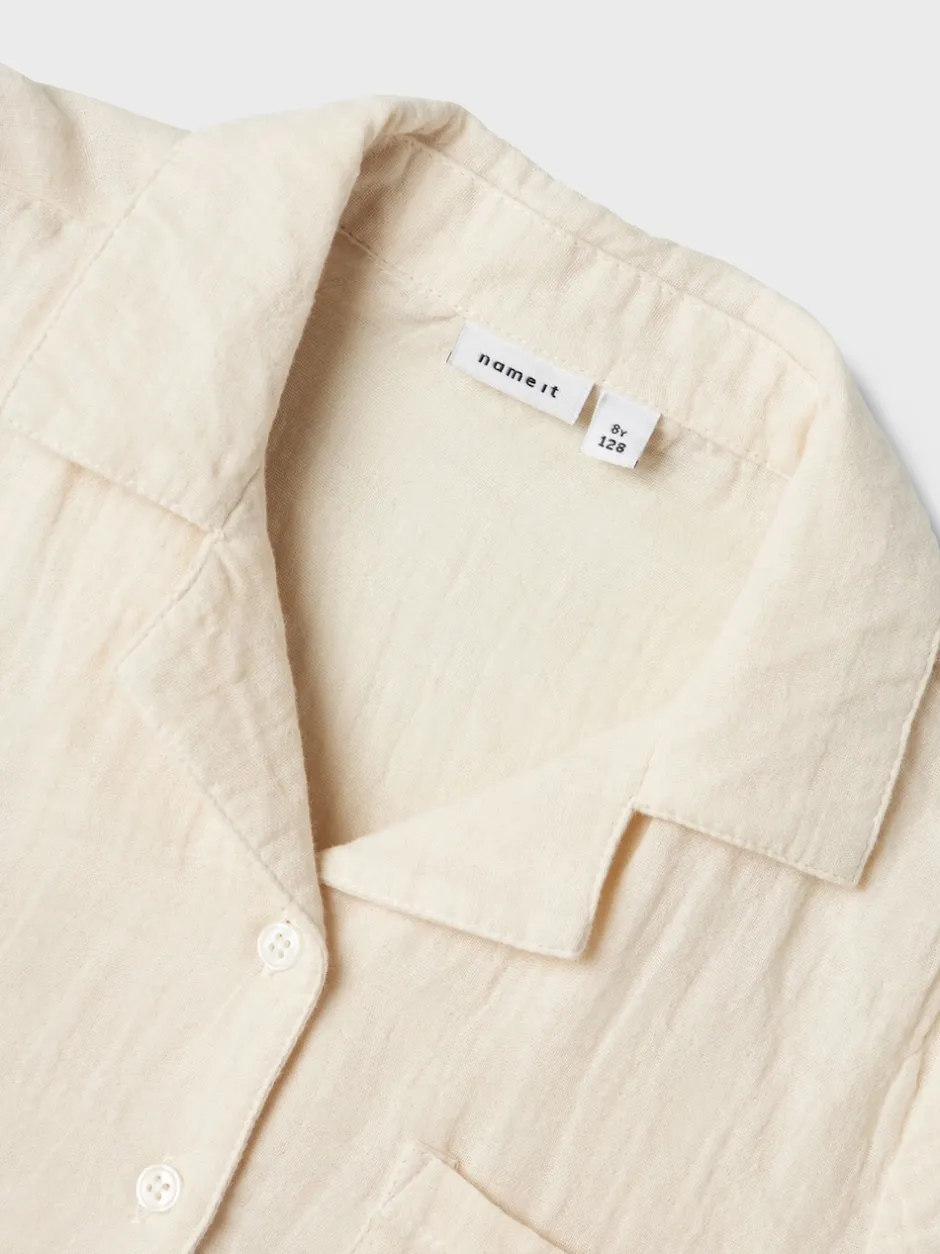 Name It Blanc chromé – Chemises à cordon de serrage aspect lin 100% coton Online
