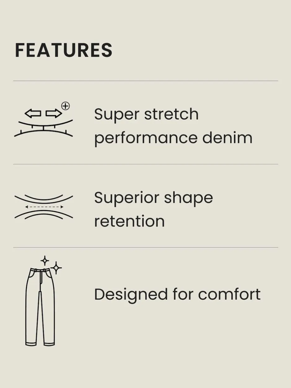 Lavable en machine. 66% Coton, 22% Polyester recyclé, 10% Viscose, 2% Elasthanne. En jean super stretch pour un maximum de confort