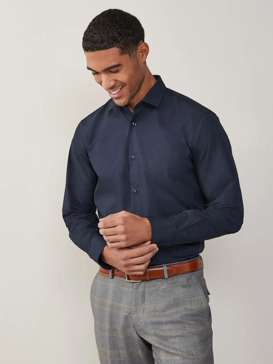 Next – Ajustement régulier – Chemises intelligentes faciles d’entretien à poignets simples Bleu marine Hot