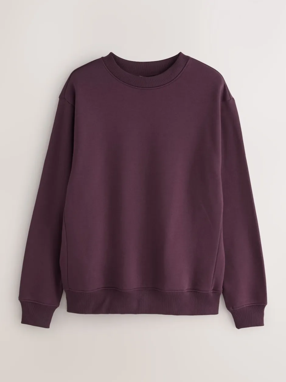 Next – Ajustement régulier – Sweat-shirt épais à Col rond riche en coton Rouge bordeaux Sale