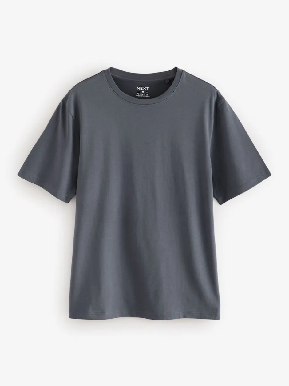 Next – Ajustement régulier – T-shirt Essential Col rond en coton Ardoise Gris Discount
