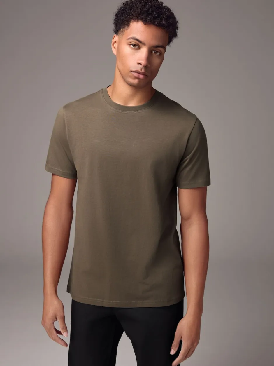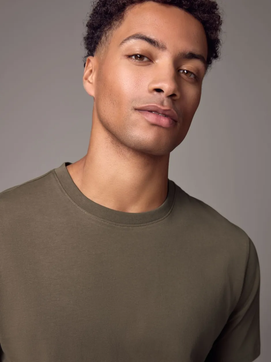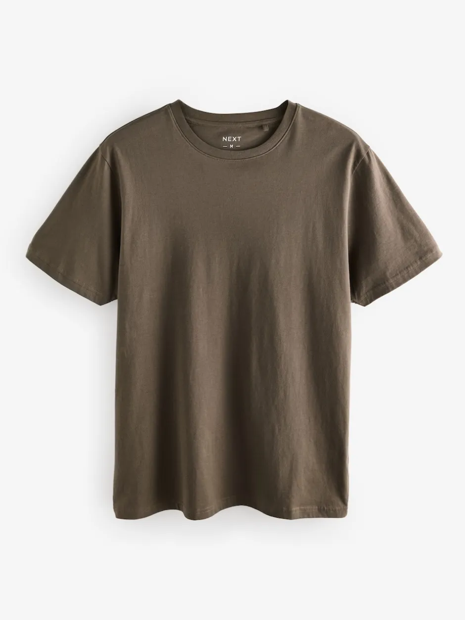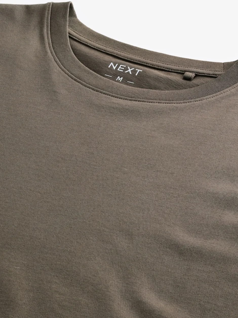 Next – Ajustement régulier – T-shirt Essential Col rond en coton Marron neutre Outlet