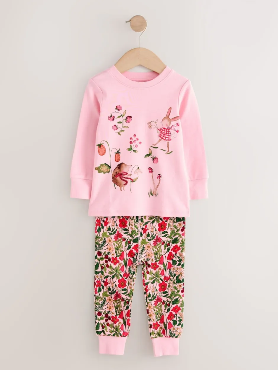 Next Applique Fleuri Rouge/Rose – Lot de 3 pyjamas Snuggle (9mois-9ans) Clearance