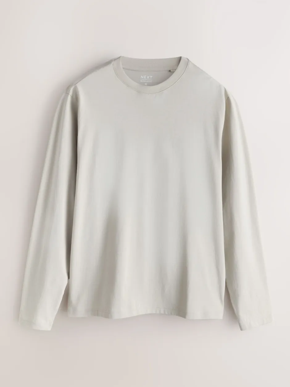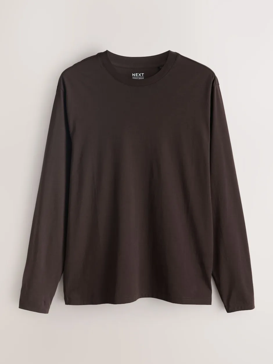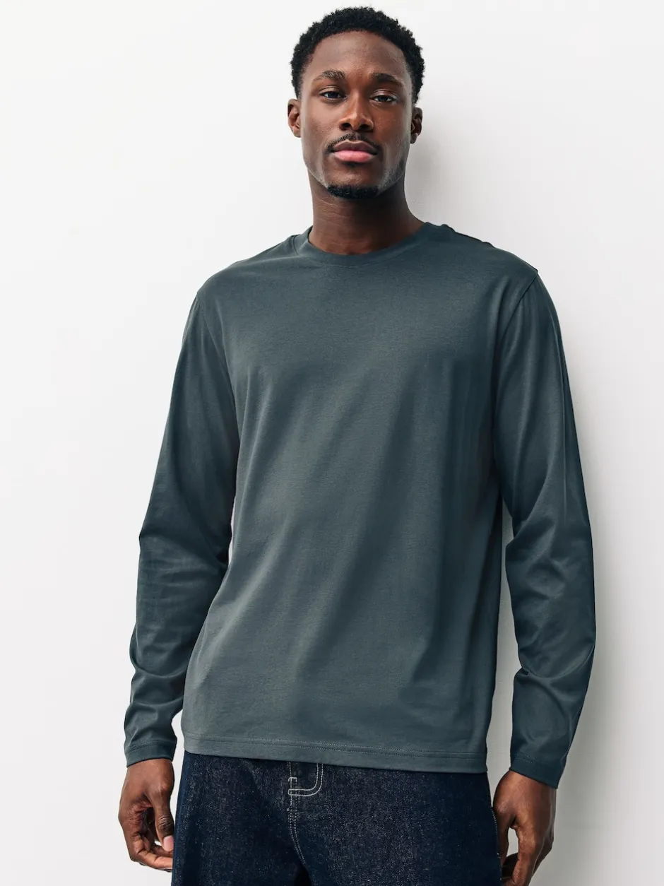 Next Ardoise/vert/écru/orange/marron – Ajustement régulier – T-shirt à coupe classique à manches longues en coton 100 %, lot de 5 New
