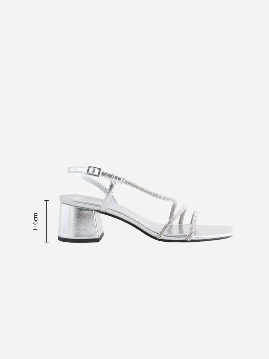 Next Argent – Sandales à talons carrés et à bretelles ornées de bijoux Forever Comfort Hot